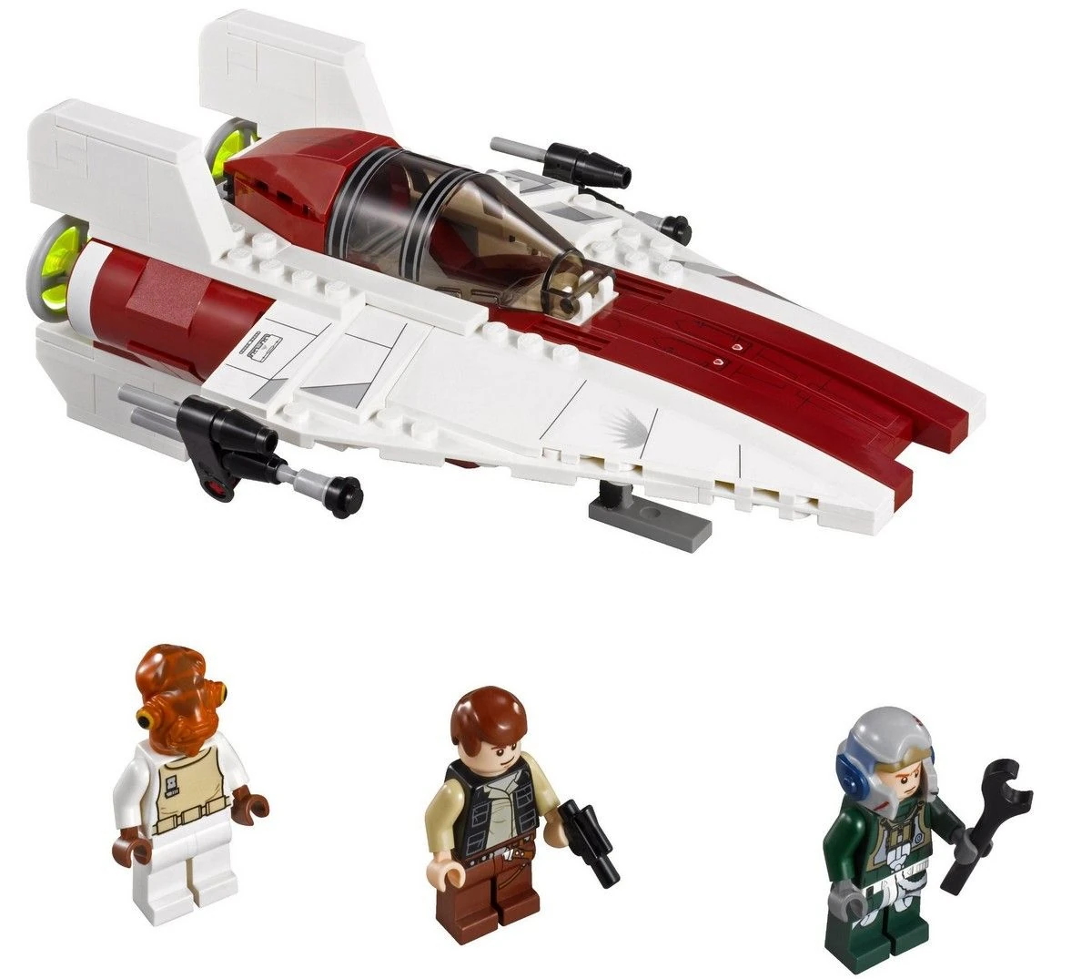 - Es gibt mehrere LEGO-Modelle des A-Flüglers: Das Erste mit der Kennnummer 7134 erschien im Jahr 2000 unter der Bezeichnung "A-Wing Fighter". Unter selbem Namen erschien 2006 ein weiteres, detaillverbessertes Modell mit der Nummer 6207. Beide Modelle waren teil einer Produktlinie zu Episode VI und sind daher rot. 2009 erschien erstmals ein A-Flügler mit grüner Farbgebung, allerdings nicht als eigenständiges Modell, sondern als Teil des Sets 7754 "Home One Mon Calamari Star Cruiser". Der momentan aktuellste LEGO-A-Flügler erschien Anfang 2013 wieder als eigenes Modell mit der Nummer 75003 unter der Bezeichnung "A-Wing Starfighter". Sämtliche dieser Sets beinhalten unter anderem die Minifigur eines Rebellenpiloten, die Figur aus dem Set 75003 ist jedoch erstmals mit einem exklusiven und detaillierten A-Flügler-Pilotenhelm ausgestattet.