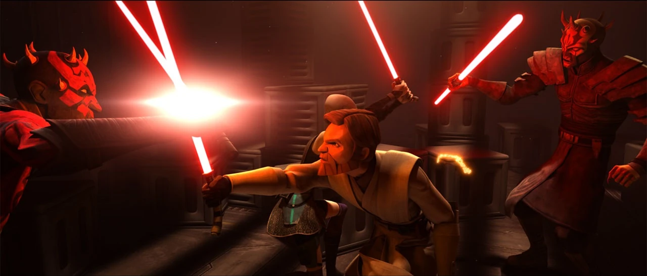 Sie bringen den bewusstlosen Obi-Wan in den Frachter bemerken deshalb nicht, dass sich Ventress in das Schiff schleicht. Darth Maul foltert Obi-Wan doch dann erscheint die Nachtschwester. Gemeinsam kämpfen sie gegen die Brüder. Doch sie sind stärker als Kenobi und Ventress und zwingen sie zur Flucht ins Cockpit. Maul und Savage versuchen sich durch die Tür zu schneiden doch das Cockpit löst sich vom Schiff und Ventress und Obi-Wan entkommen.