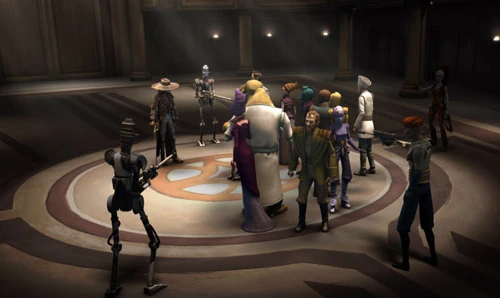 Im letzten Jahr der Klonkriege trug der Hohe Rat der Jedi Anakin Skywalker auf, seinen Freund Palpatine auszuspionierten, da die Jedi vermuteten er würde tief in den Machenschaften der Konföderation stecken. Wiederwillig bemühte sich Anakin also Information über den Kanzler zu erlangen, auch im persönlichen Gespräch mit Palpatine in seiner Residenz. Auch die Delegation der 2000 unterbreitete ihre Bedingungen dem Kanzler im Vorstandsgebäude.[4]