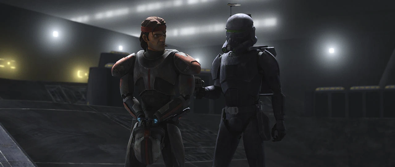 Im Übungsraum nahm Crosshair seinen Helm ab und plädierte abermals dafür, dass sich die Kloneinheit 99 dem Imperium anschließen sollte, um ihrem Leben wieder einen Sinn zu verleihen. Hunter lehnte jedoch ab, woraufhin Crosshair meinte, dass sie nicht denselben Fehler wie beim vergangenen Scharmützel auf Kamino begehen und erneut zu Crosshairs Feinden werden sollten. Der Anführer der Einheit korrigierte Crosshair, dass sie niemals seine Feinde gewesen waren. In genau dem Moment ertönte ein Alarm und die Trainingsdroiden von Omega wurden in den Übungsraum gelassen. Hunter nutzte den Moment der Ablenkung, um Crosshair zu Boden zu stoßen. Auf Nachfrage von Wrecker meint Tech, dass er nicht für die Aktivierung der Trainingsdroiden verantwortlich war. Omega schloss sich dem Kampf mit ihrem Energiebogen an, als AZ-3 sie daraufhinwies, dass sie für eine Ablenkung zu viele Droiden aktiviert hatte. Während die Kloneinheit 99 sich ein Feuergefecht mit den Trainingsdroiden lieferte, kam es zwischen Crosshair und Hunter zu einem Handgemenge. Dabei stellte sich Hunter jedoch auch schützend vor Crosshair, welcher dem Sergeant wiederum nicht in den Rücken fiel, sondern stattdessen Seite an Seite mit der Kloneinheit 99 wie in alten Zeiten kämpfte. ES-02 sah dies in dem Moment, als sie in den Übungsraum gerannt kam. Als sie Rampart informierte, meinte der Vizeadmiral, sie solle die Klone zum Sterben zurücklassen, weswegen sich die Soldatin in ein Shuttle evakuierte.[2]