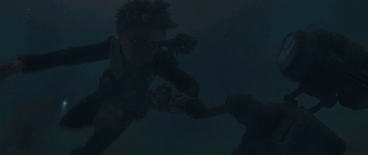 Nachdem AZ-3s Energiereserven vollständig aufgebraucht waren, sank der Droide erneut hinab. Da sie den Medi-Droiden jedoch nicht aufgeben wollte, öffnete sie entgegen Hunters Warnung die Behandlungskapsel und schwamm zu AZ-3 herunter. Omega konnte den Medi-Droiden erreichen, jedoch ging ihr bald schon der Sauerstoff aus. Crosshair rettete daraufhin AZ-3 und Omega mithilfe eines Seilwerfers, um sich so bei dem Duo dafür zu revanchieren, dass sie ihm zuvor das Leben gerettet hatten. Als sie endlich auf der Plattform angekommen waren, hielt Wrecker den deaktivierten Droiden in den Armen. Omega blickte fassungslos zu den Rauchschwaden am Horizont, als sie erkannte, dass die gesamte Stadt im Meer versunken war. Bevor imperiale Scouts auftauchten, machte sich die Kloneinheit 99 bereits abflugbereit, wobei Crosshair auf der Landeplattform zurückblieb. Omega richtete ihr Wort an Crosshair und erinnerte ihn daran, dass er immer noch ihr Bruder wäre, ehe sie zusammen mit den anderen Kamino verließ.[3]
