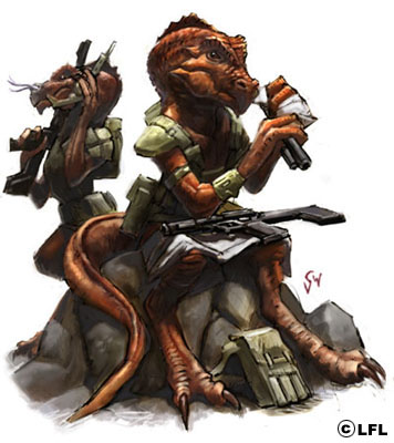 - sind Lebewesen, die über die typischen Reptilienmerkmale verfügen. Zu diesen gehören die geschuppte Haut, die Schlitzaugen und der Schwanz. Sie gebären ihre Kinder als Eier, die sie selbst oder von der Sonne ausbrüten lassen. Zu dieser Klasse zählen die Trandoshaner von Trandosha.[1]