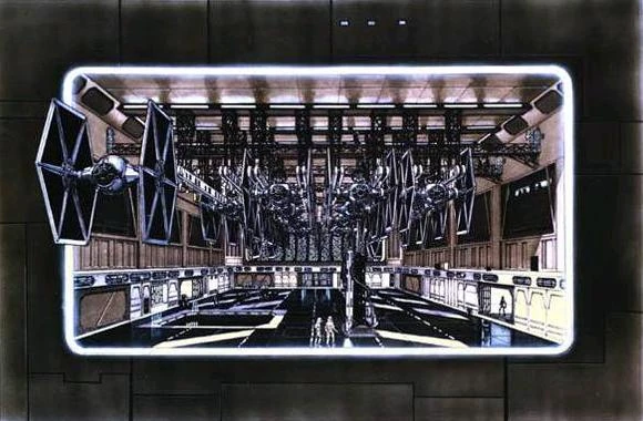 - Auf einem der allerersten Storyboards waren TIE-Jäger zu sehen, die innerhalb der Atmosphäre eines Planeten ein imperiales Gefängnis bewachten, welches über dem Boden schwebte.[26]